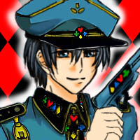 話說雖然是黑手黨的BOSS,但因為長相跟アリス以前(原本跟アリス交往、結果喜歡上アリス的姊姊)的男朋友很像,所以在遊戲裡被アリス虐的很慘...其它人在結局都能安心結婚或私定終生的,就只有這位帽子屋還在努力地說服アリス同意。XDDD"